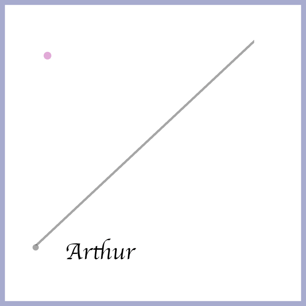 We begin with Arthur. Here he is. He is quite small in fact he is a big as a dot. (How big is a dot). He is in fact a 1D man (One dimensional – you know, length, width, height etc) Can you see him in the corner.