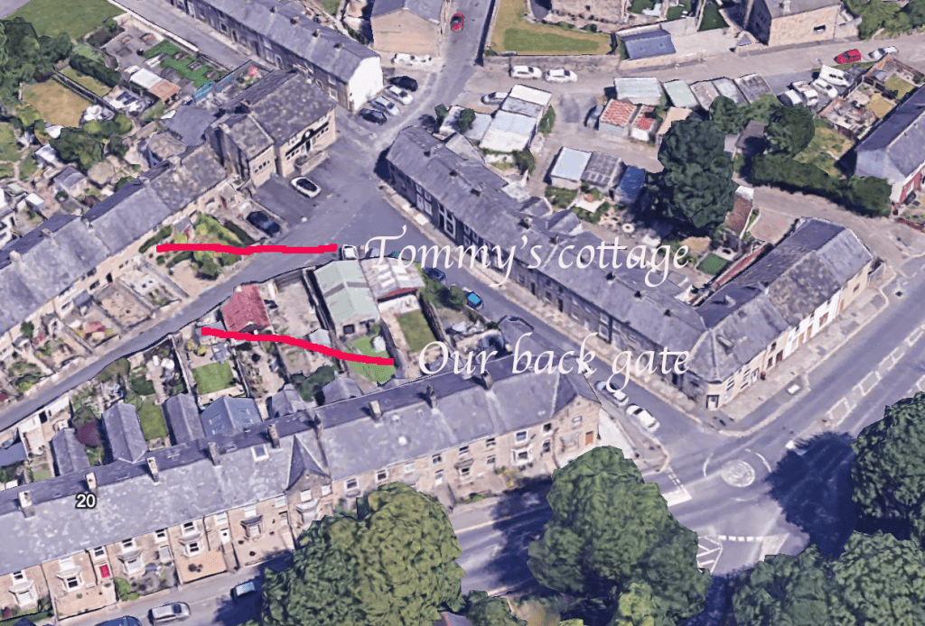 This story came as a complete surprise it began probably in late junior school and was completed probably 40, 50 years later when my mother died. The road at the bottom is Whalley Road and I used to live at number 14. Outside our back gate there was a row of weavers cottages and in one of them lived Tommy with his son , Edward. I used to nip across the back lane and chat with Tommy. Two things I do remember from those days were